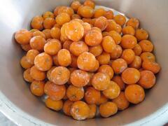 デザートは蒸し暑い季節にぴったりの冷凍みかん。1年生は冷たいみかんに驚いていました。