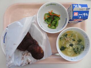 ココア揚げパン アスパラのサラダ ABCスープ 牛乳