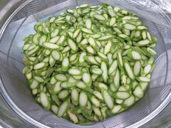 塩をまぶしてからゆでると、塩気もほんのりついて、見た目もきれいにできました。