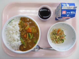 春野菜カレーライス じゃこサラダ ぶどうゼリー 牛乳