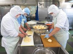 こちらは新じゃがいもを切っている様子です。大きさをそろえて丁寧に切ってくれています。