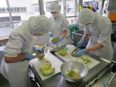 切り始めると良い香りが漂ってきます。食べやすいように、種は全て調理員さんが取ってくれました。