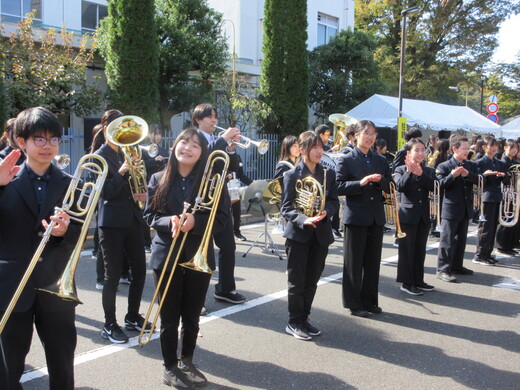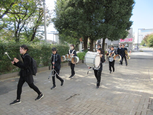 この夏のコンクールで金賞を受賞した吹奏楽部ですが、西東京祭りでは、初めて演奏を披露しました。期末考査の直前でしたが、1.2年生が3曲演奏しました。最後の「風になりたい」では手話も披露しました。12月1日のひばり祭りでは、中原小学校でオープニング演奏を行う予定です。