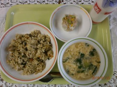 チャーハン、焼売、にらたまスープ、牛乳。