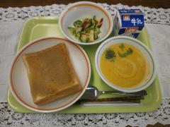20日(金曜日) セサミトースト ニョッキのパンプキンスープ りんごのサラダ 牛乳