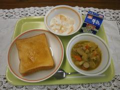 25日(水曜日) レモンシュガートースト キャベツのカレーポトフ フルーツヨーグルト 牛乳