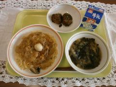 1日(月曜日) あんかけ焼きそば たこ揚げポテト わかめと白菜のスープ 牛乳
