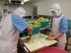おひたしに入れるたくさんのレタスは一口大に切ります。