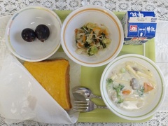 9月4日 オレンジフレンチトースト・オリエンタルサラダ・マカロニのクリーム煮・ぶどう(ピオーネ)・牛乳