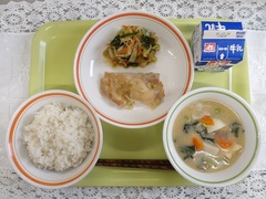 9月27日 ご飯・鶏肉のねぎ塩焼き・わかめとじゃこの和え物・呉汁・牛乳