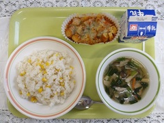 12月5日 コーンライス・生揚げのチーズ焼き・小松菜ときのこのスープ・牛乳