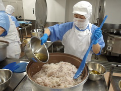 もち米を入れて炊いたご飯と混ぜ合わせます。