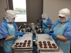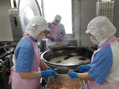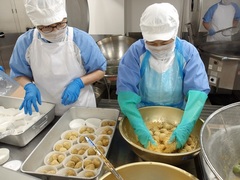 スープの肉団子も手作りです。同じ大きさになるように一つずつ汁に落とし入れます。