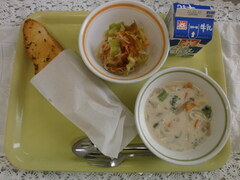 16日(水曜日) ガーリックフランス・クリームシチュー・チップスサラダ・牛乳