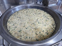 ピラフの具材には、ツナやマッシュルームなどの缶詰を使いました。今日はピーマンとパプリカで彩りもきれいになるようにしています。
