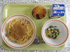 9月11日 ツナと大根のスパゲティ・キャベツのサラダ・ブルーベリーマフィン・牛乳