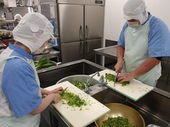 今年の冬至は12月22日なので一日早いですが、今日は冬至に関連したメニューにしました。冬至は、一年で一番昼が短く、夜が長い日です。日本では昔から冬至の日にかぼちゃを食べたりゆず湯に入ったりする風習があります。かぼちゃは別名「なんきん」と呼ばれ、冬至の日に「ん」のつく食べ物を食べると「運」を呼び込めると言われています。そこで今日は、なんきん(かぼちゃ)、にんじん、れんこん、だいこん、こんにゃくなど、「ん」のつく食べ物をたくさん入れた汁物を作りました。また、冬至にゆず湯に入る風習は、江戸時代からあったと考えられています。ゆずには血行を良くして体を温めたり、風邪を予防したりする効果があります。給食では、ゆずの皮をすりおろし、果汁を絞って和え物の風味付けにしました。お家ではゆず湯に入って温まってください。