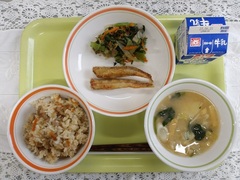 6月12日 かやくご飯・あじの南蛮漬け・ゆでそら豆・むらくも汁・牛乳