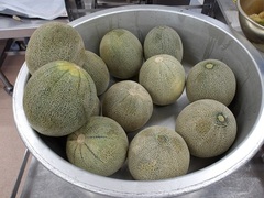 メロンの皮の網目模様は、メロンが自分で作り出したひび割れです。メロンは大きくなる途中で表面の皮の成長が止まってしまいますが、内側の果肉はその後も成長していきます。その時に表面にできるひび割れが網目模様で、きれいな網目模様が出ているものほどおいしいと言われています。今日は、茨城県で採れた「タカミメロン」という品種で、香りが強くさっぱりとした甘さがおいしいメロンです。しっかり甘みがあってやわらかくて、ちょうど食べごろのメロンでした。