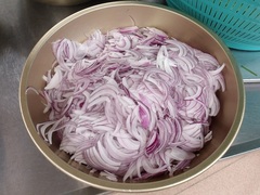 ヤムウンセンには、普段はあまり使わない赤玉ねぎが入っています。