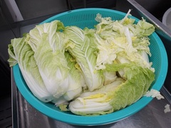 市内農家さんに届けていただいた新鮮でおいしい白菜。大根も同じ農家さんから届けていただきました。