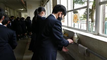1年生は13日<火>から給食始まりました。その前の学活の時間で準備から片付けまでの説明、アレルギー対応のことなど担任から細かく説明しました。