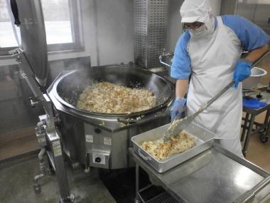 自校給食が開始して1ヶ月が経ちました。毎日美味しくいただくことができています。朝6時半には給食の準備が始まっていて、12時過ぎにできあがり、教室前にワゴンが運ばれます。 給食室の中には学校職員は栄養士さんしか入れないので、中を見ることができません。でも校庭から給食室を見ることができます。体育の授業の時に、また放課後の部活動の時に、働いていらっしゃる姿を見ることができますので、ちょっとのぞいてみましょう。
