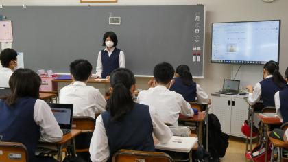 延期していた生徒会役員選挙を2日間で実施しました。1日目は会長選挙、2日目は役員選挙でした。今回は感染防止のため、オンラインでの立ち会い演説会、投票はタブレット端末で実施しました。