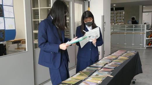 今年度1年間に、授業で作った作品や班で制作した行事のまとめ学習などを展示しています。また夏休みに取り組んだ意見文を2学期に生徒全員が学級で発表しました。各学級の代表を選び、その中からそれぞれの学年の代表1名が発表しました。
