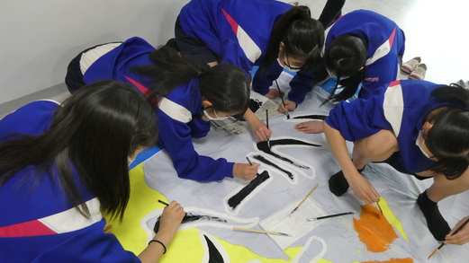 運動会ソーラン節の旗を美術部が制作しました。下絵から色塗りまで、数週間かかって、力強い旗が完成しました。運動会では実行委員会の生徒が旗をなびかせて、3年生のソーラン節の演技を力づけます。楽しみです。
