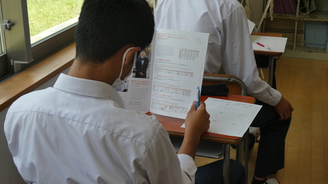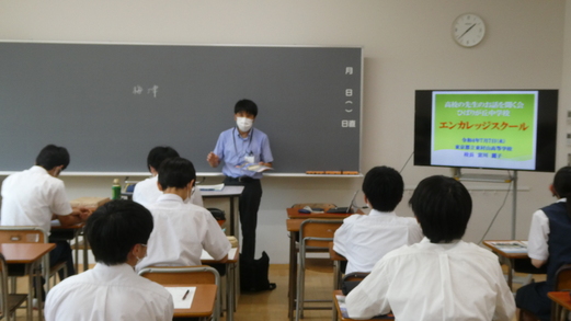 様々なタイプの高校の先生から上級学校の説明を聞き、自分の進路を考えました。あらかじめ生徒にアンケートをとり、来ていただく上級学校を決めました。希望の保護者も参加しました。