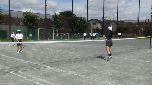 夏休み中は、ルールや審判ができるように、プレーをしながら確認をしています。2年生が1年生に指導しています。