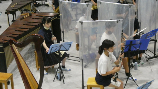 今年度は、A組に出場し、課題曲のマーチと、自由曲の「ポカホンタス」の2曲を演奏しました。感染対策に気を遣いながら、短い練習時間でしたが、部員数が多くレベルの高いA組で結果を出すことができました。