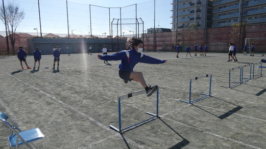 「50m走とハードル走のタイム差を縮めるために、自分やペアの課題について、考えたことを実践して解決してみよう」ということをめあてに、練習に取り組みました。ペアやグループで課題を捉え、解決方法を探求して実践します。