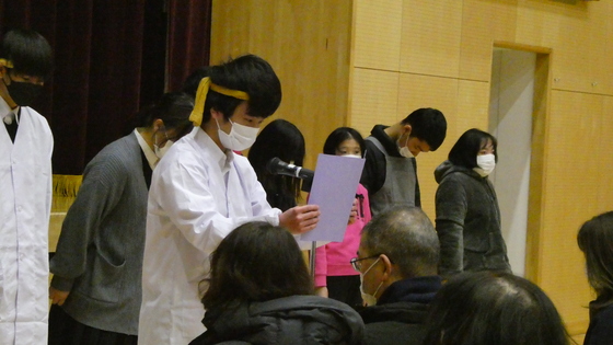 「カツ丼屋の野望」の劇での、それぞれの役になりきっての台詞や演技には、練習を重ねた成果が出ていて、とても良かったです。緊張していましたが、楽しく元気にできていました。