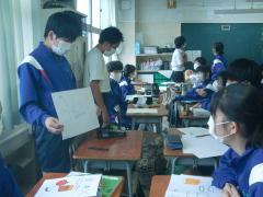 今、1年生から3年生までの国語で、意見文を書いてスピーチを行う学習を行っています。一人一人が意見文を書き、読みの練習をしたあと、班での発表を行い、学級での発表となります。テーマは1年生は「紹介したい人物、私の大切にしているもの」3年生は「おすすめの本を紹介しよう」です。2年生は3つのテーマから選びます。2、3年生は話し方のポイント、特に「説得力のある話し方」に力を入れて学習しています。また視覚的に強調して説明したい場合は、フィリップ(絵や言葉)を使う生徒もいます。