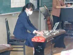 3年生はギター、1、2年生は琴の授業を行っています。1年生は「さくら」の演奏の発表を終わりました。2年生は自分で作曲した曲を発表しました。日本の四季や花などをイメージしたきれいな曲、力強い個性的な曲など、一人一人苦労して作曲したオリジナル曲の発表で素晴らしかったです。