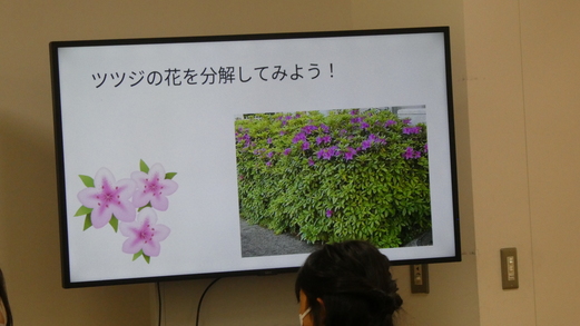 先日行ったタンポポの観察の復習のあとに、「花のつくり」の学習で、ツツジの花を分解して観察しました。