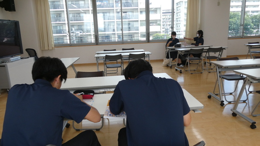 後半は8月23日〜25日に行いました。自宅では集中して勉強ができない、夏休みの宿題がなかなか終わらない、そんな生徒のために、今年から夏休み中に、勉強に集中できる場所を地域学校協働活動の1つとして、学校運営協議会委員の方や地域の方に運営をお願いして行っています。 後半の3日間は、卒業生の大学生が3名も来て下さいました。