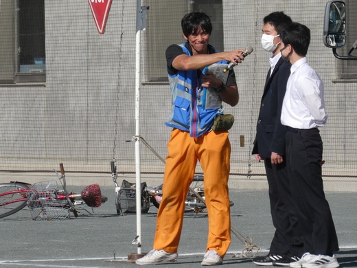 スタントマンによる事故の再現場面では、生徒から声があがりました。
