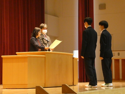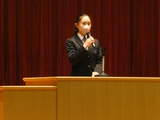 生徒会長から、いじめ防止月間について、いじめ防止のためにできることについて、訴えがありました。