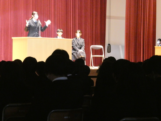 夏休みに取り組んだ意見文を2学期3学期に生徒全員が学級で発表しました。各学級の代表を選び、その中からそれぞれの学年の代表1名が発表しました。