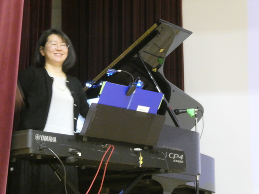 星空ナビゲーターから、宇宙の話、生命の源などスケールの大きなお話しを、映像とともに、穏やかで分かりやすい語り口で届けてくださいました。またピアノ、シンセサイザーの演奏は中学生が楽しめる曲をおりまぜていただき、楽しくまた癒やされるひとときをつくってくださいました。ナビゲーター、ピアニストともに、本校保護者の方々です。