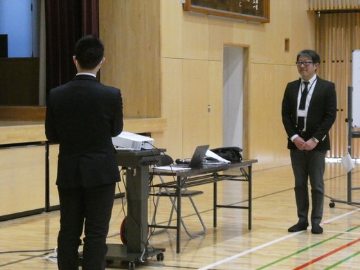 毎年、おやじ倶楽部から、卒業を迎える3年生に向けて、人生の大先輩からのメッセージを伝える講演をいただいています。昨年に続き、おやじ倶楽部のメンバーで、元PTA会長にお願いしました。