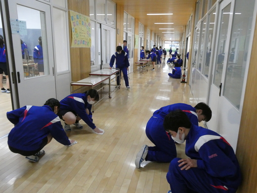 1年間過ごした教室や廊下に、感謝の気持ちを込めて掃除をしました。卒業まであと数日です。