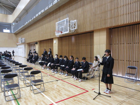 新入生が気持ちよく中学校生活をスタートできるよう、在校生があたたかく迎える際、その出会いとなるように、生徒会が企画しています。新入生はひばりが丘中学校生徒会の一員だという自覚をもってもらいます。