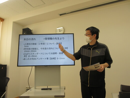 毎年年度初めに行う、話し合い活動の「ひばりスタンダード」についての研修を国語科担当が行いました。