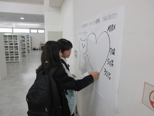 今年度も社会を明るくする運動が実施され、地域の方々と一緒にあいさつ運動を実施しています。 毎週水曜日は、本校生徒会が「学校をあいさつで一杯にしようプロジェクト」に取りくみ、中庭で挨拶運動を継続しています。そのおかげで学校全体で「あいさつ運動」を盛り上げていこうという雰囲気があります。今回は生活委員会中心に、地域の方とともに行うあいさつ運動です。