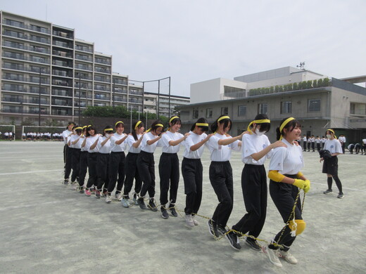 大縄跳び 男女に分かれて大繩を飛び、その合計を競います。