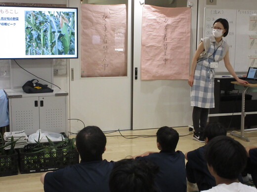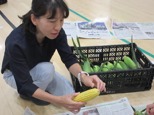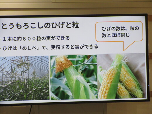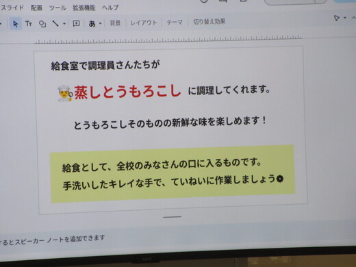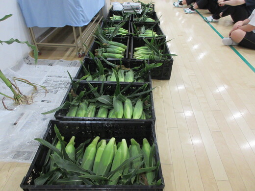 栄養士から、本日のトウモロコシの生産者の中野農家さんのお話しと、朝4時に収穫したばかりでとても甘いという話しなどがありました。